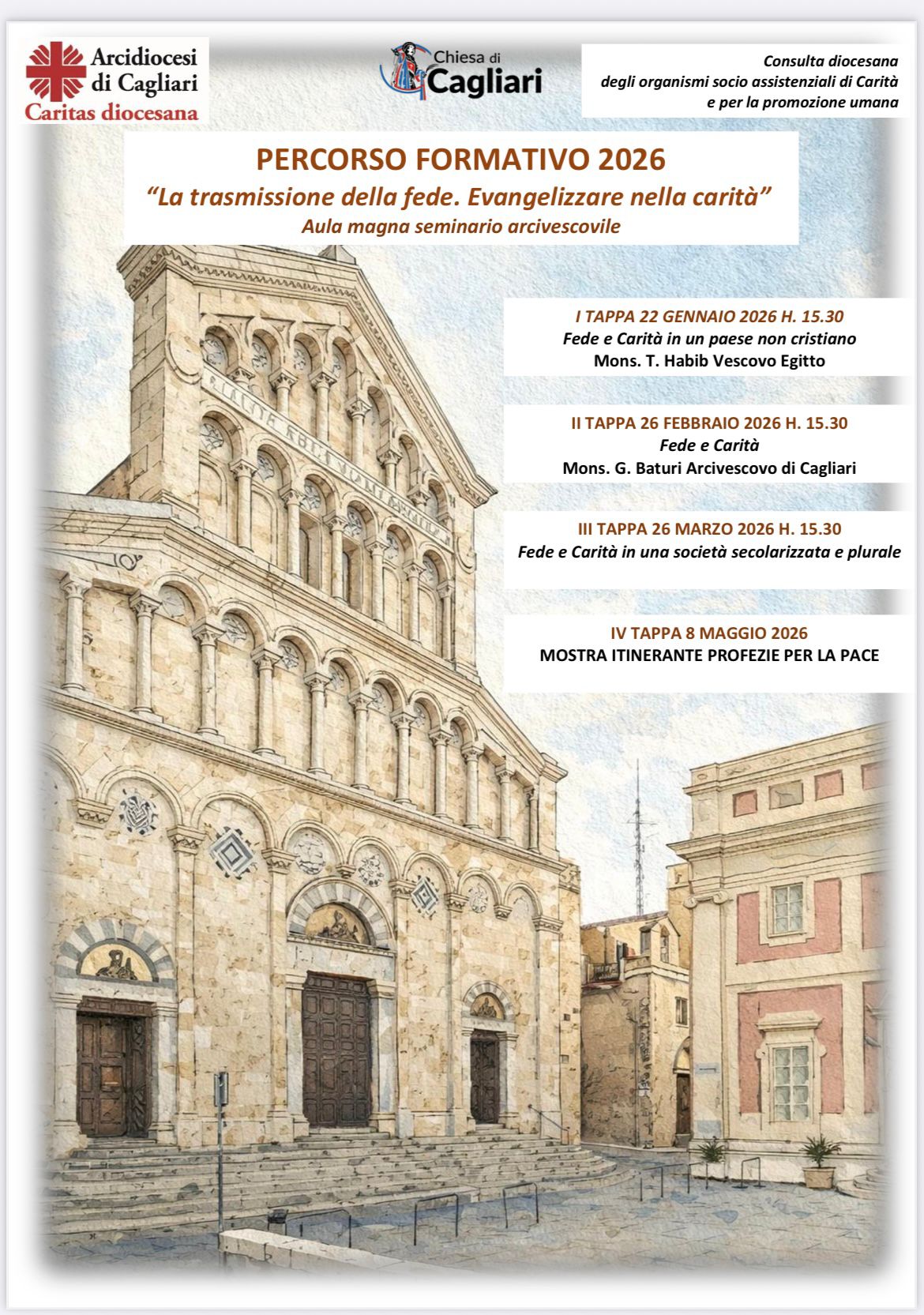 Tutte le tappe del percorso si svolgeranno alle ore 15.30 nell’Aula Magna del Seminario Arcivescovile di Cagliari (via Mons. Cogoni, 9).