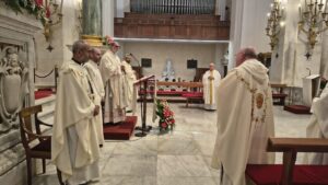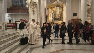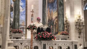 Prosegue il cammino del novenario in preparazione al centenario della dedicazione della Basilica di Nostra Signora di Bonaria. Nella terza giornata, la celebrazione è stata presieduta da monsignor Roberto Fornaciari, vescovo di Tempio-Ampurias, che ha guidato la comunità in un momento di intensa preghiera e riflessione.