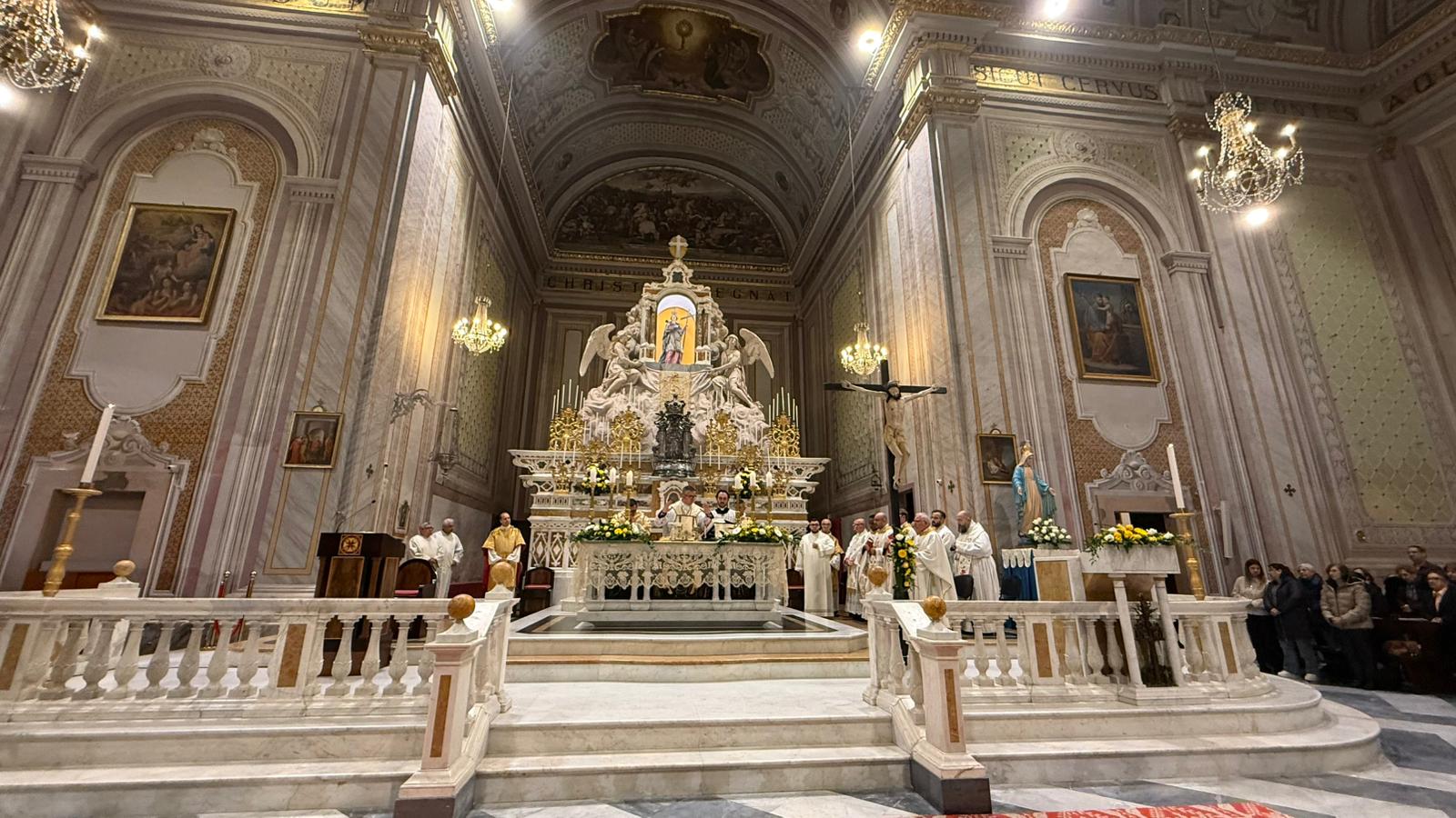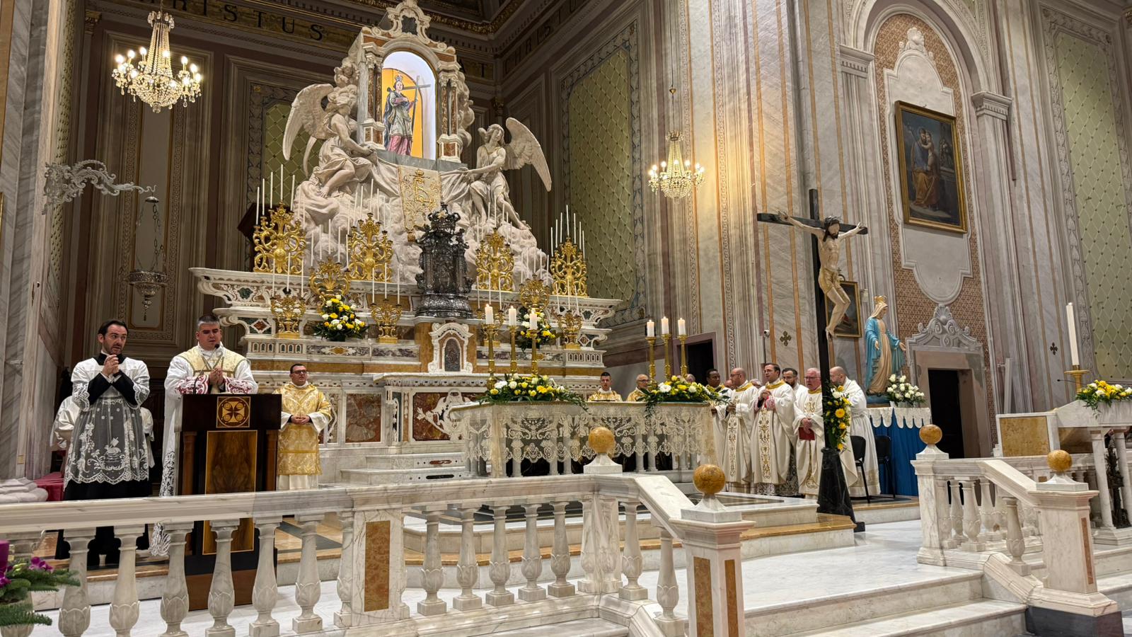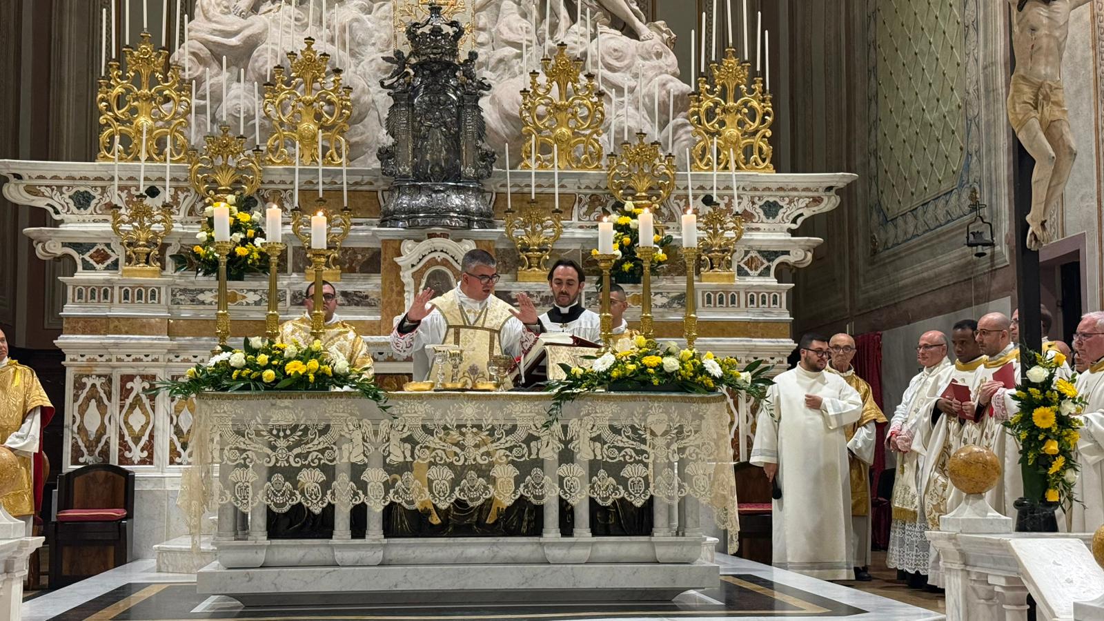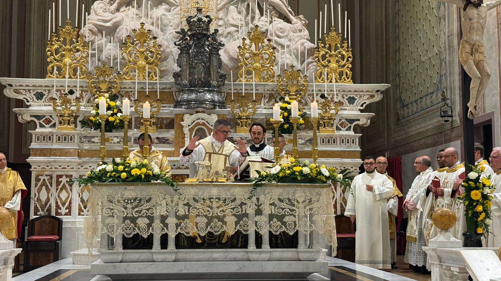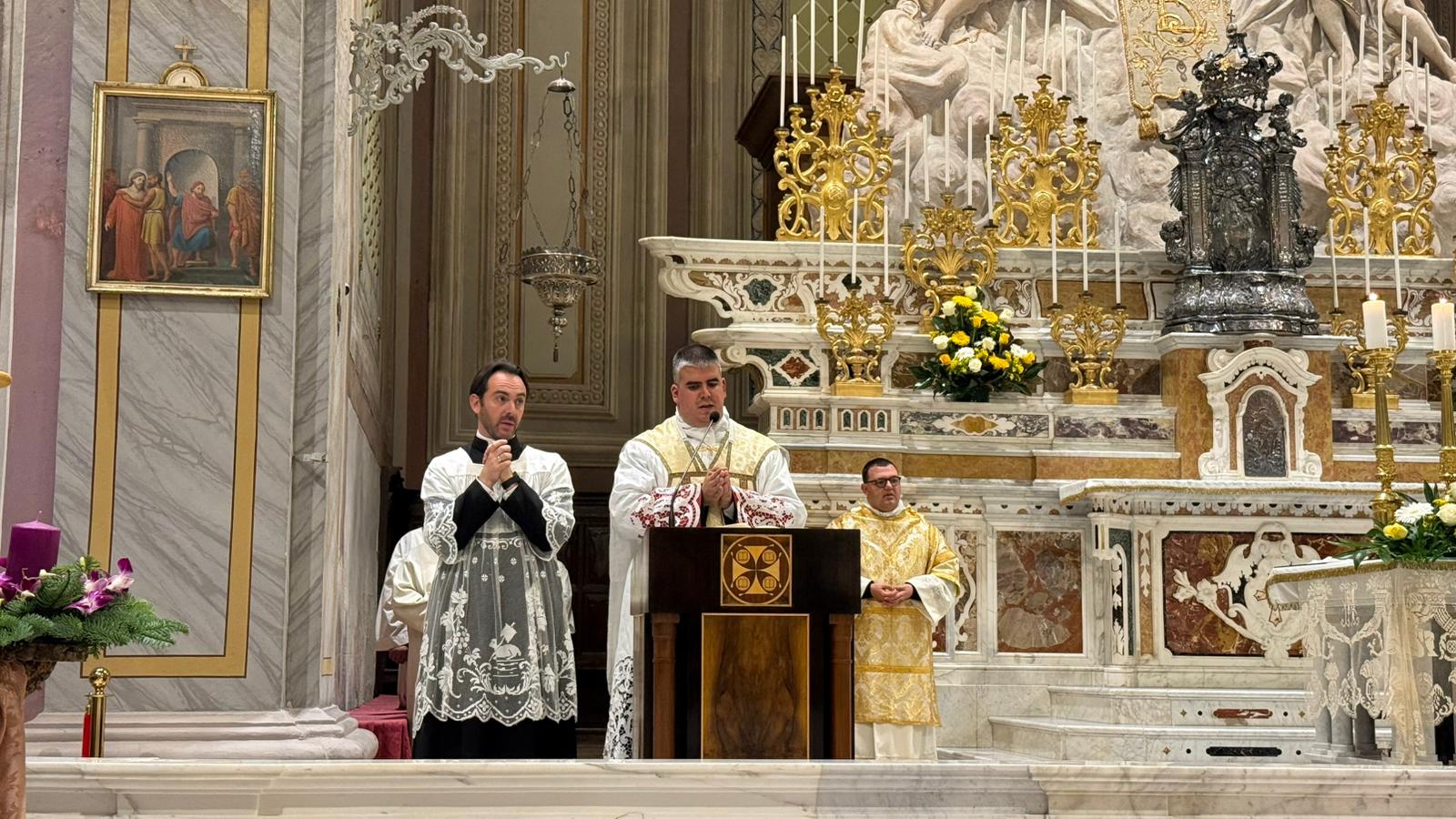 Una gremita basilica di sant’Elena ha fatto da cornice alla prima Messa di don Samuele Mulliri. Originario della storica comunità parrocchiale quartese, il neosacerdote, ordinato dall’arcivescovo Baturi sabato scorso, ha presieduto la celebrazione eucaristica celebrando su quell’altare dove, più volte, è salito fin dalla tenera età come ministrante.